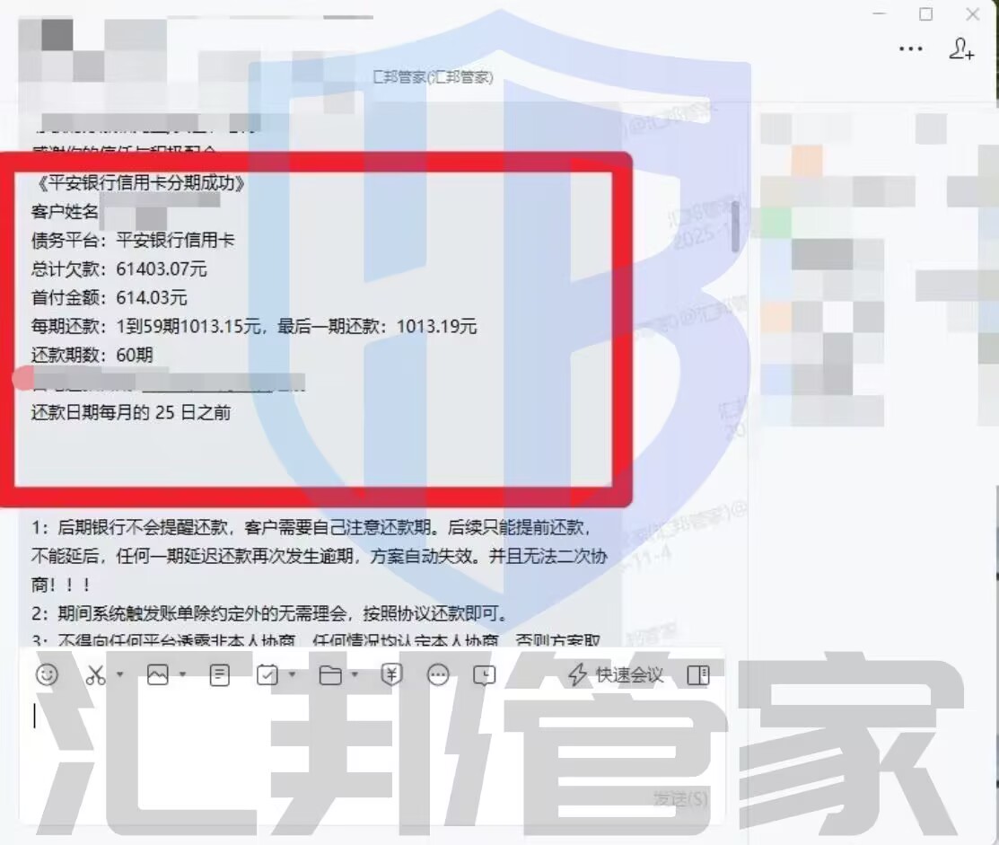 汇邦管家的存在,是为了让那些在困难里挣扎的人,看见一条还能继续往前走的路。债务并不是绝境,只要方向找对了,事情总会解决的。我们专注债务协商 债务托管 专业靠谱 如果你正在经历类似的困境,可以把情况发给我们,你若真诚,我们一定雪中送炭!